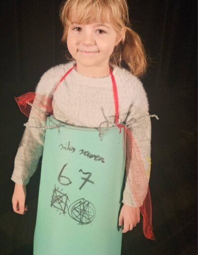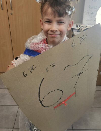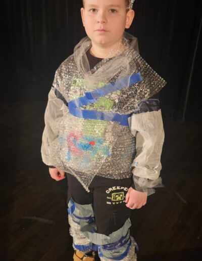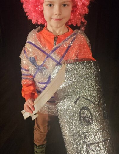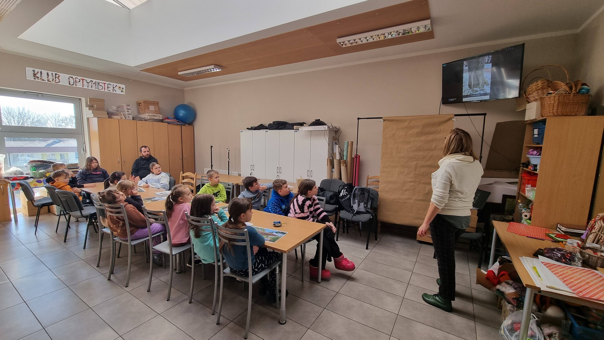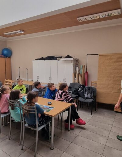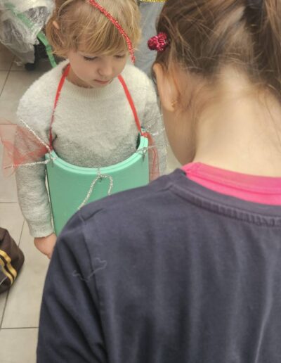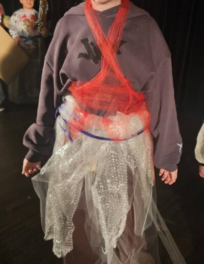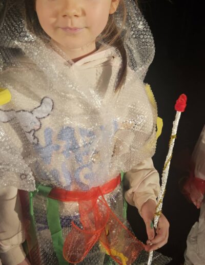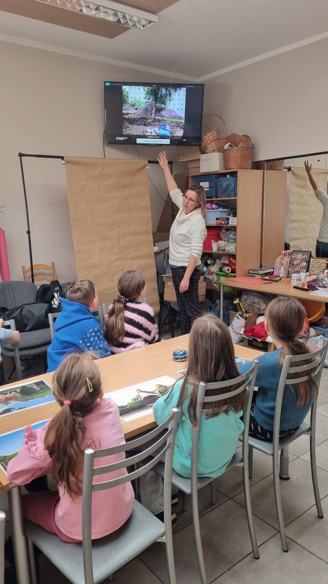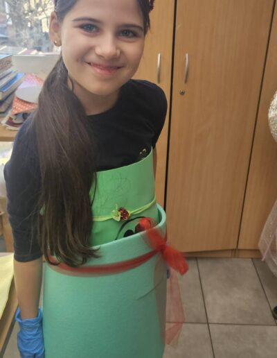 Nie zabrakło też kreatywnego działania. Podczas warsztatów plastycznych dzieci tworzyły stroje, dodatki i projekty z materiałów z odzysku, poznając ideę zero waste. Było dużo śmiechu, współpracy i dumy z własnych pomysłów.