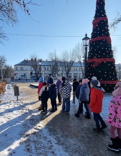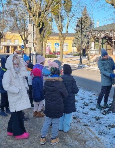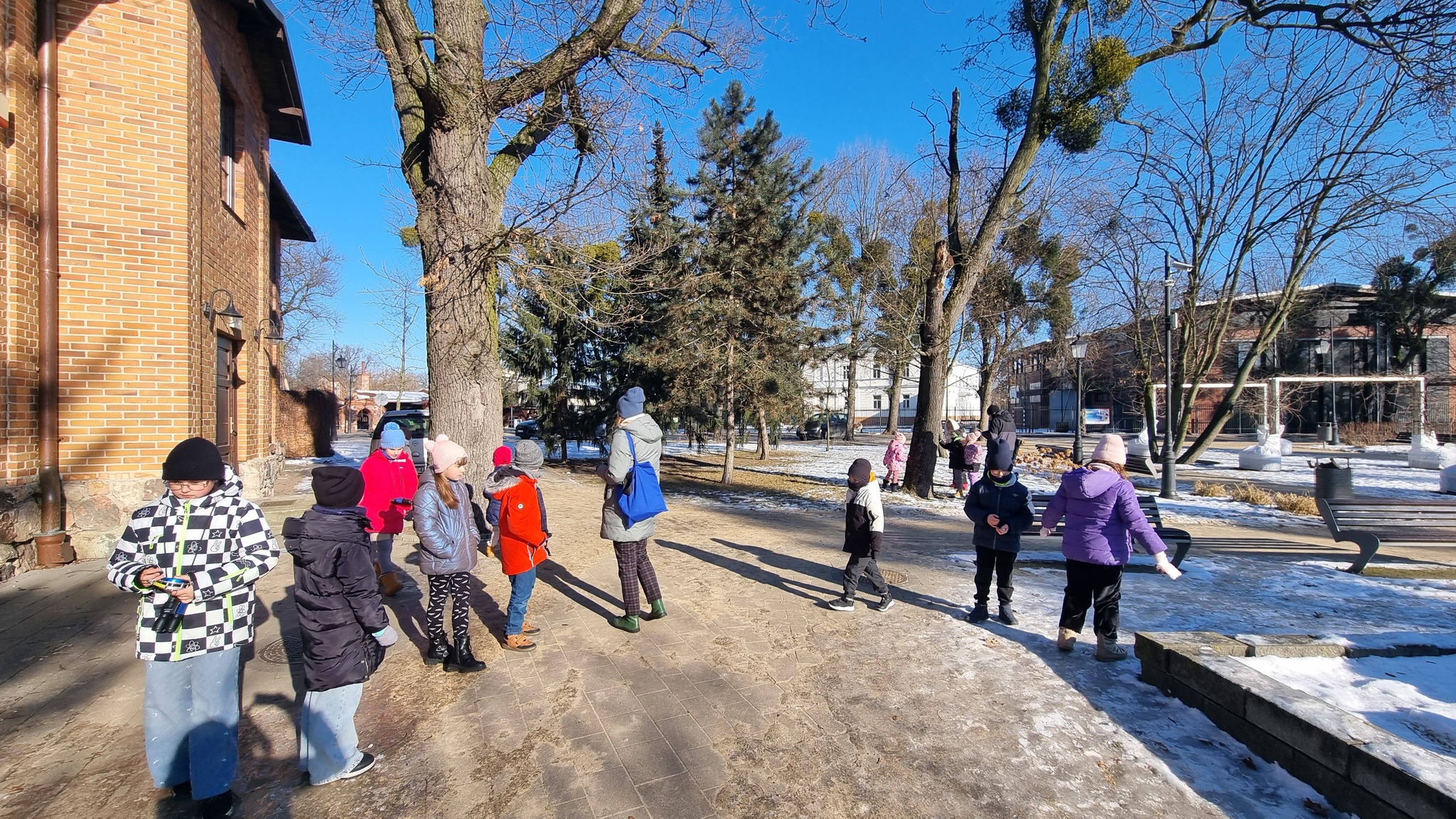 Dużym zainteresowaniem cieszyły się również zajęcia przyrodnicze – rozmowy o drzewach, ich znaczeniu dla środowiska oraz praktyczne obserwacje w terenie. Mierzenie obwodu drzew, oglądanie kory przez lupę czy ocena kondycji gałęzi przez lornetkę zamieniły zwykły spacer w małą przygodę badawczą 🌳🔍