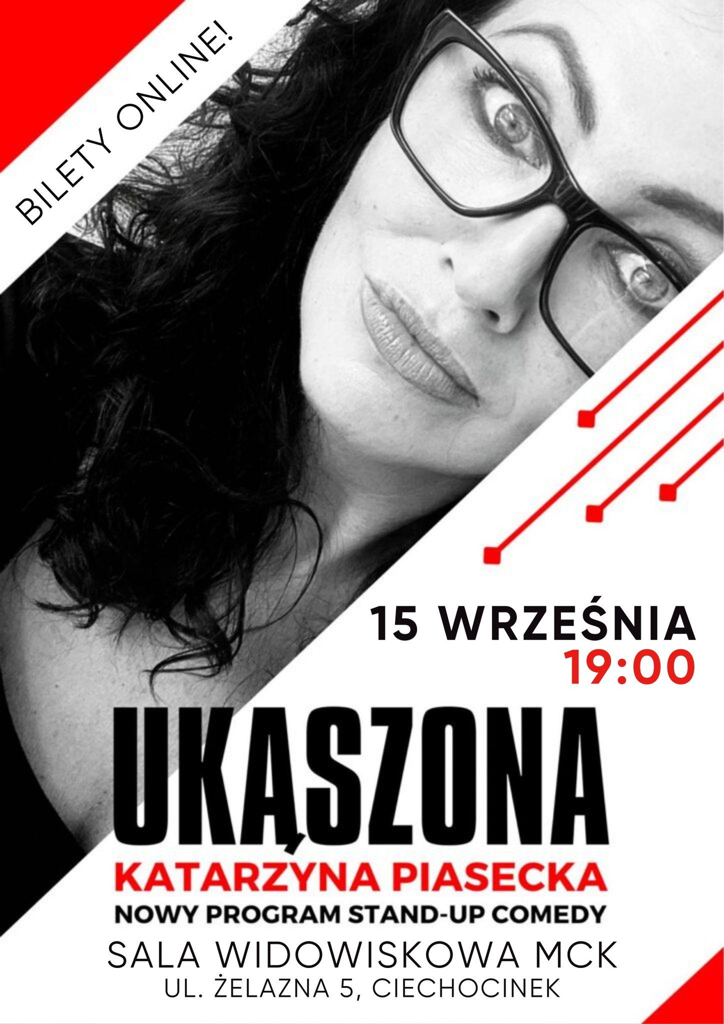 15 września o 19:00 w naszej Sali Widowiskowej MCK wystąpi Katarzyna Piasecka z zupełnie nowym programem stand-up comedy „Ukąszona”.