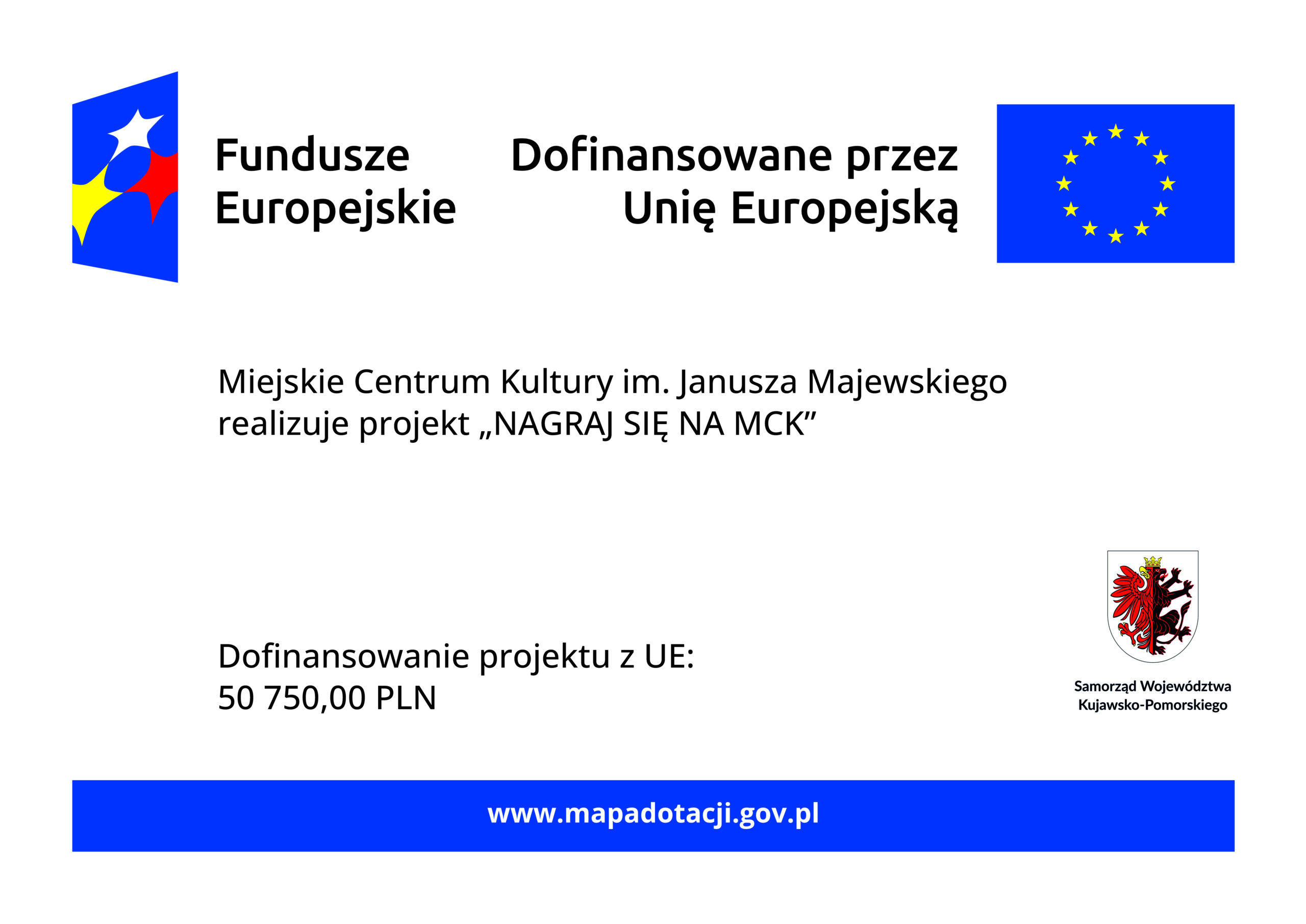 Wysokość wkładu Funduszy Europejskich wynosi 50 750,00 zł.