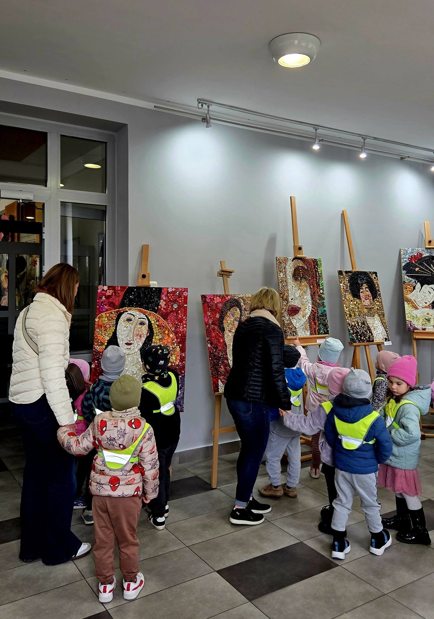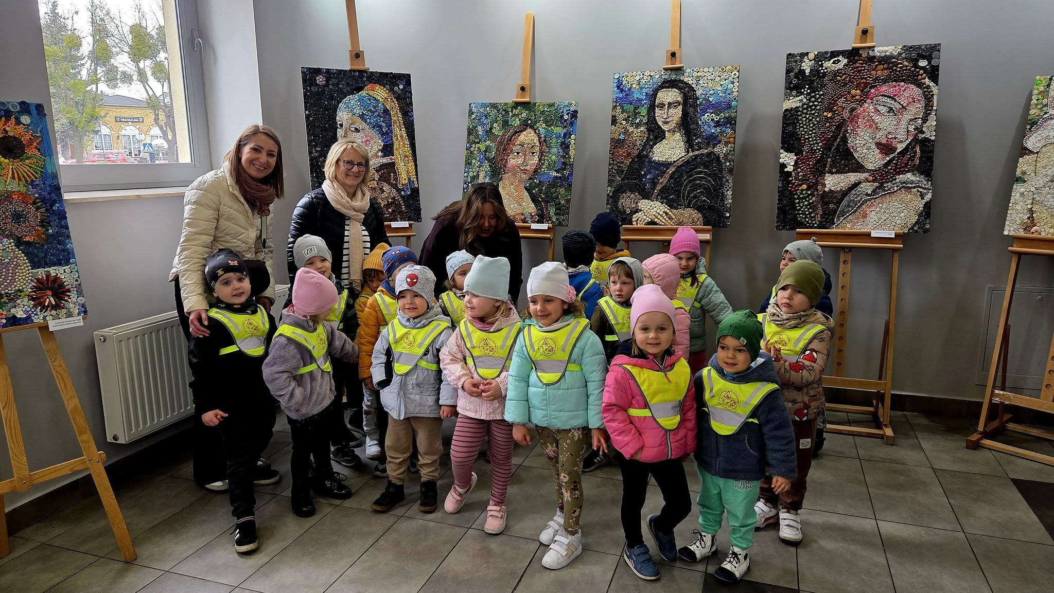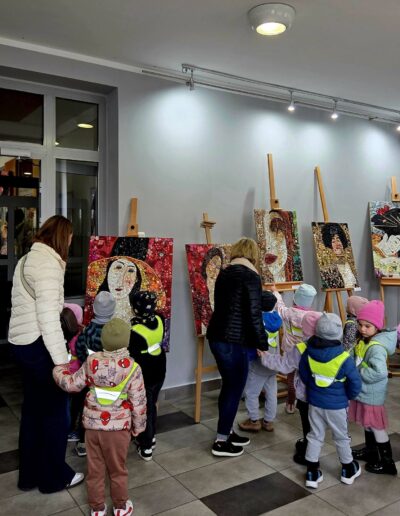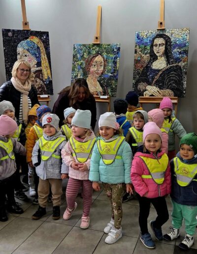 Mili goście z Przedszkola Samorządowego Bajka na wystawie „Malarstwo w guziczkach” Pani Janiny Gralak. Dziękujemy za odwiedziny.