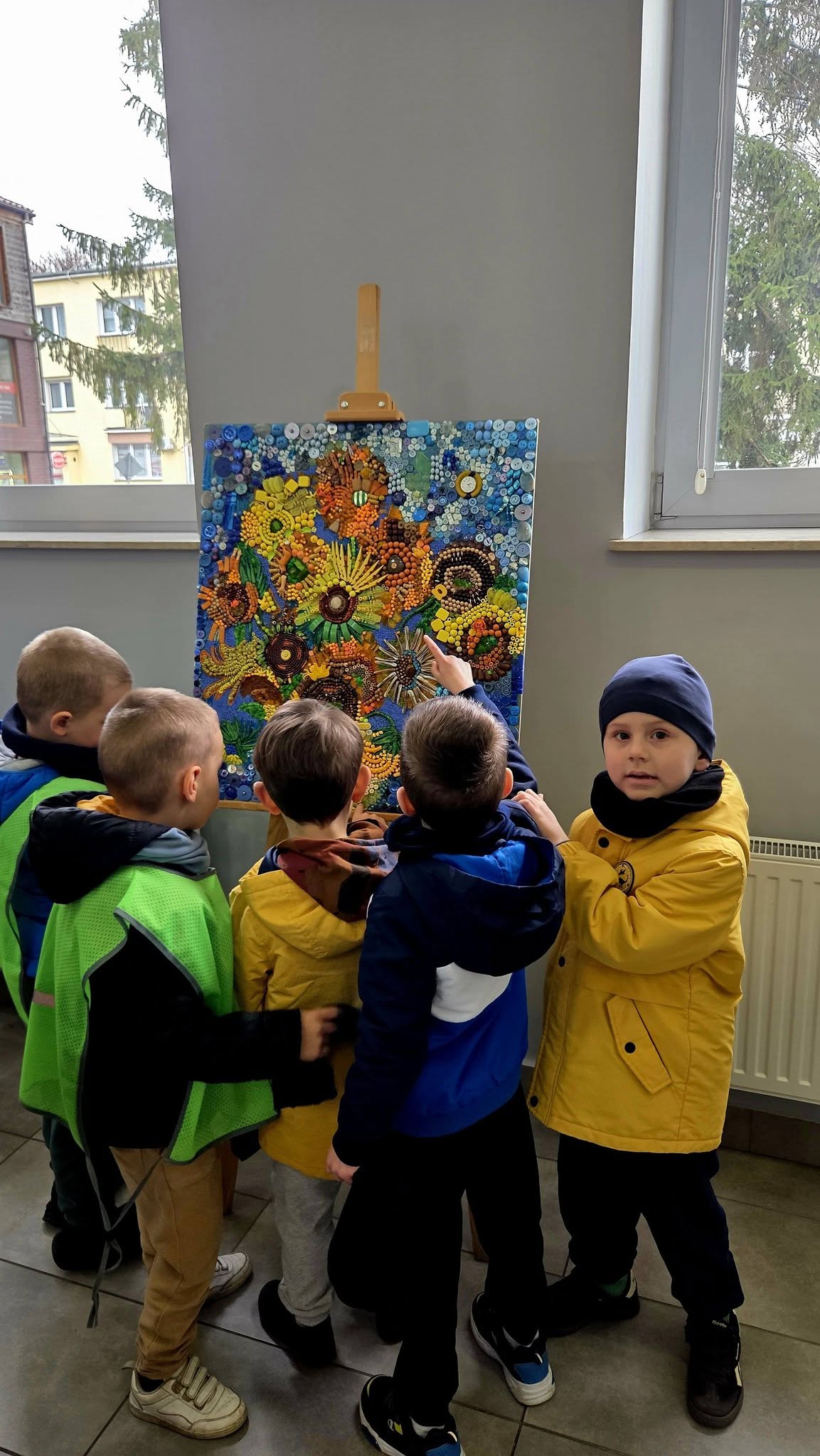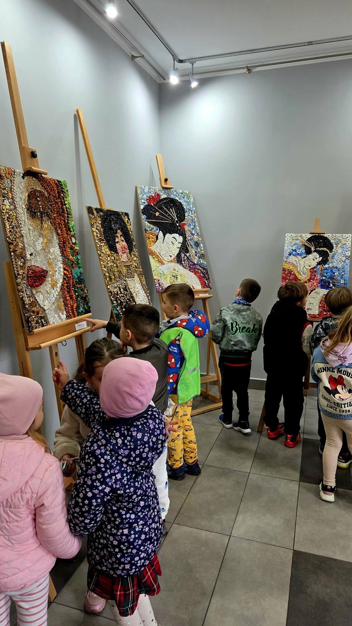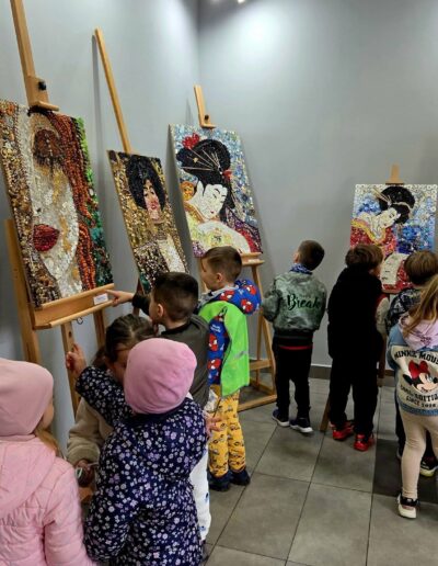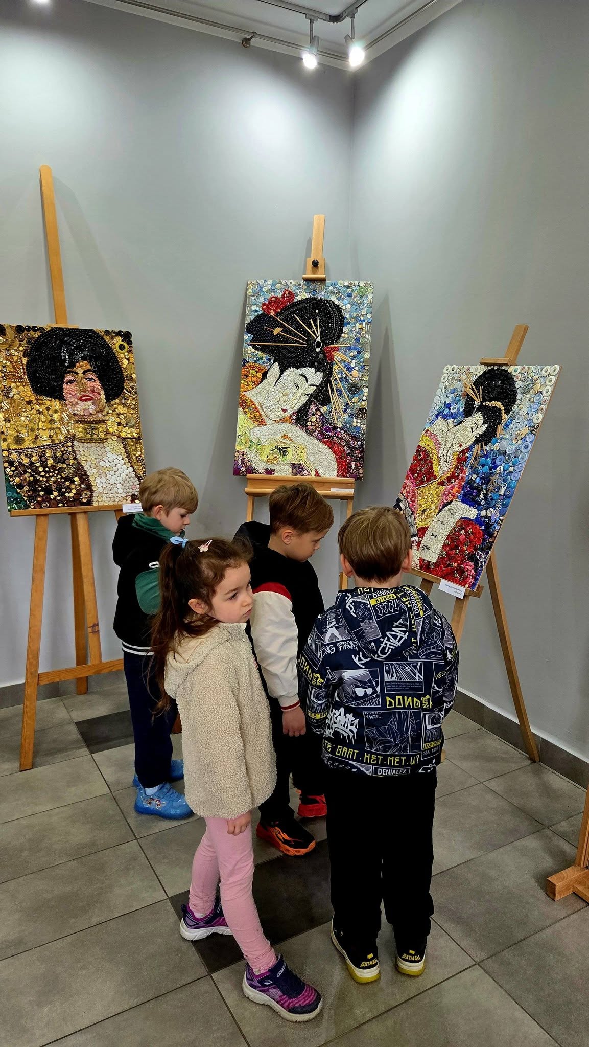Mili goście z Przedszkola Samorządowego Bajka na wystawie „Malarstwo w guziczkach” Pani Janiny Gralak. Dziękujemy za odwiedziny.