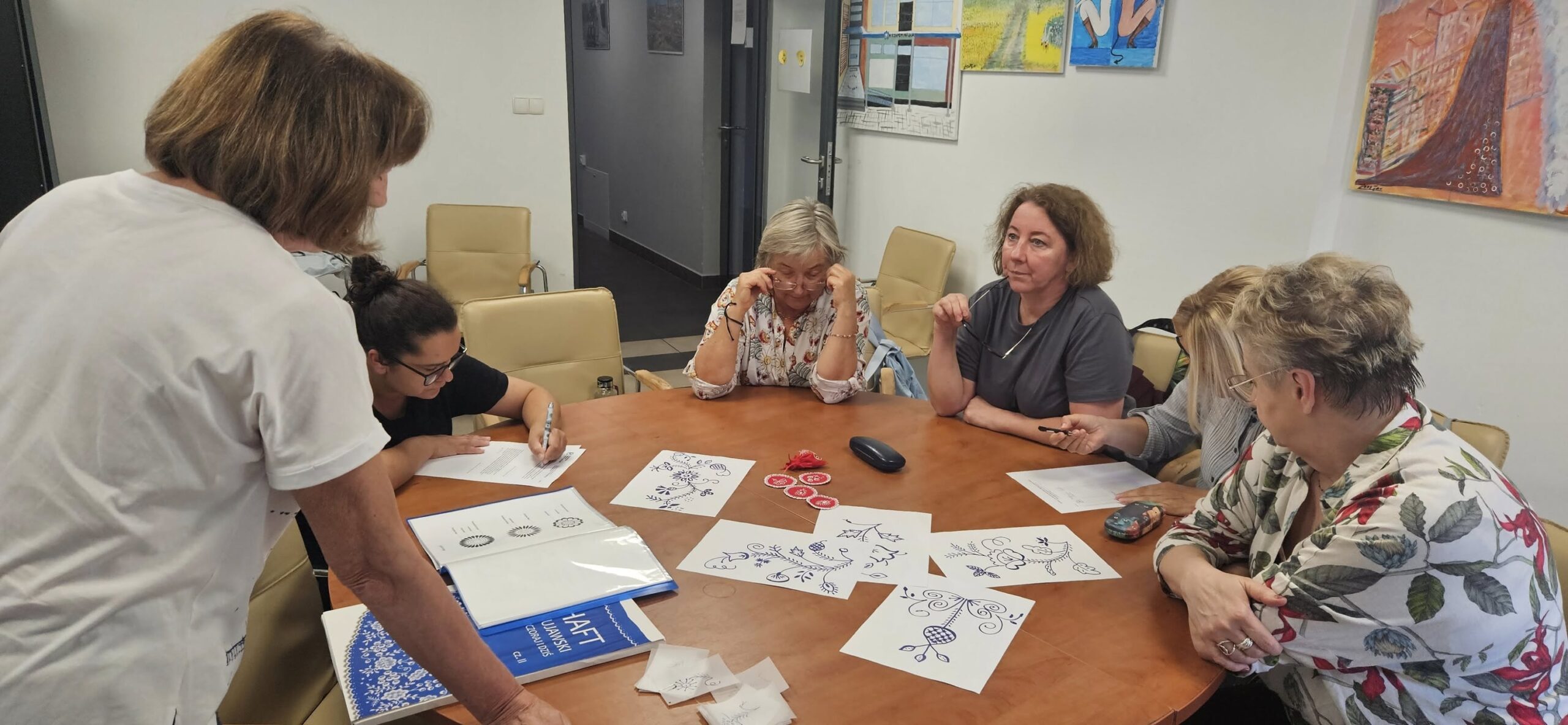 Pod czujnym okiem twórczyń ludowych z Zespołu Rękodzieła Artystycznego „Supełek” – Teresy Buczyńskiej, Małgorzaty Barnat, Danuty Piotorowicz oraz Teresy Kurto – uczestnicy mieli okazję zgłębić tajniki haftu kujawskiego oraz frywolitki.
