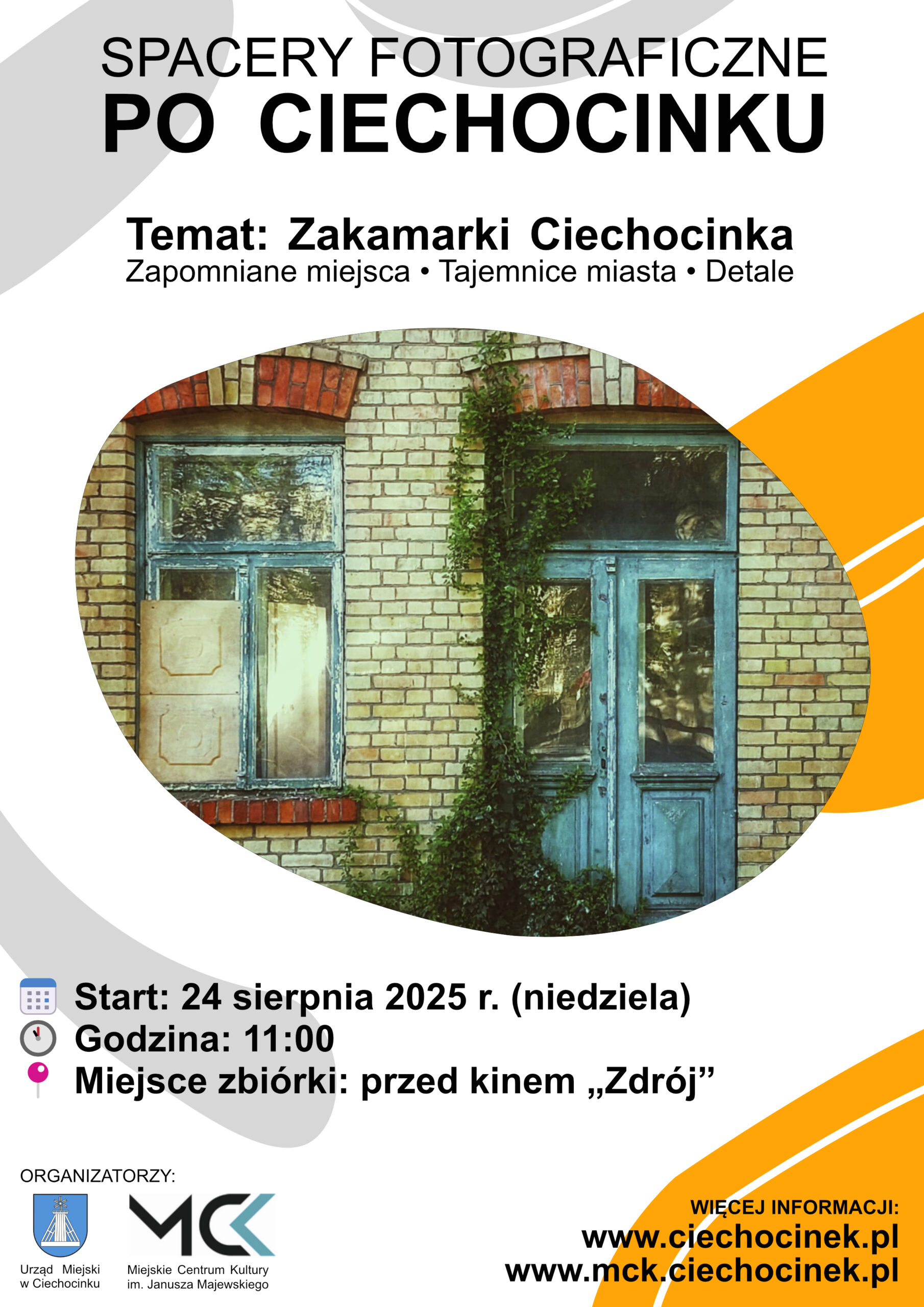 Już 24 sierpnia (niedziela) o godz. 11:00 zapraszamy na drugi Spacer Fotograficzny po Ciechocinku! Tym razem ruszamy tropem miejskich tajemnic, zapomnianych zaułków i wyjątkowych detali architektury.
